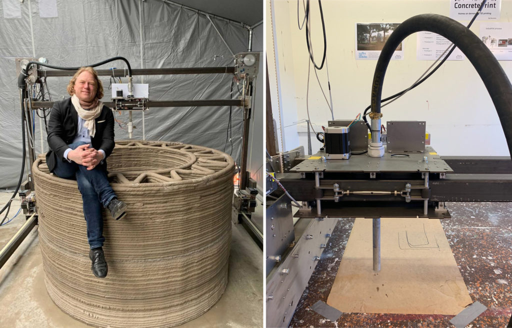 ConcretePrint har lyckats 3d-printa en cylinder bestående av dubbla väggar i betong. – Målet är att skriva ut radhus sensommaren och hösten 2021, säger vd:n Tobias Haslingen.