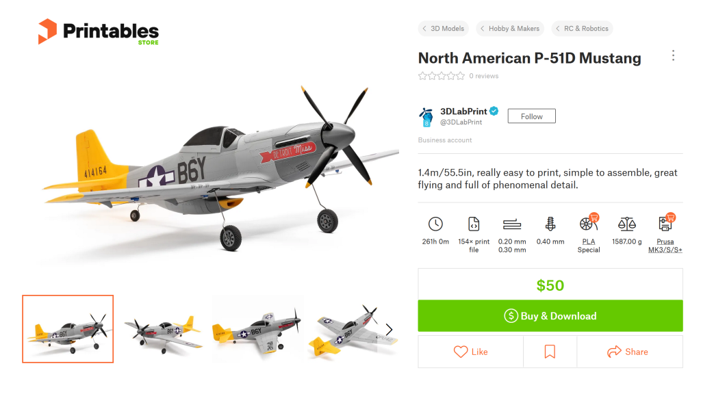 I mitten av december 2023 lanserade den tjeckiskbaserade 3D-skrivartillverkaren Prusa Research Printables Store, en marknadsplats för 3D-utskrivbara modeller. Där kan makers tjäna pengar på sina 3D-modeller direkt via hemsidan.